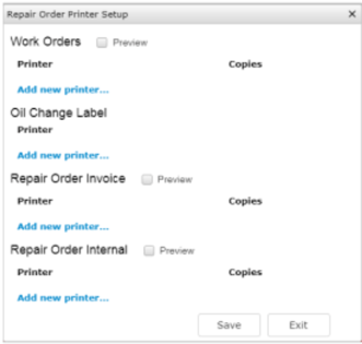 In Service, there are three printers that can be set: Work Order, Oil Change Label, Repair Order (Invoice), and Repair Order (Internal). Unlike the check printer which is a global printer, service printing is a per user setup per workstation using the printers installed on the local PCs. Force the printer tray as needed in the driver.
